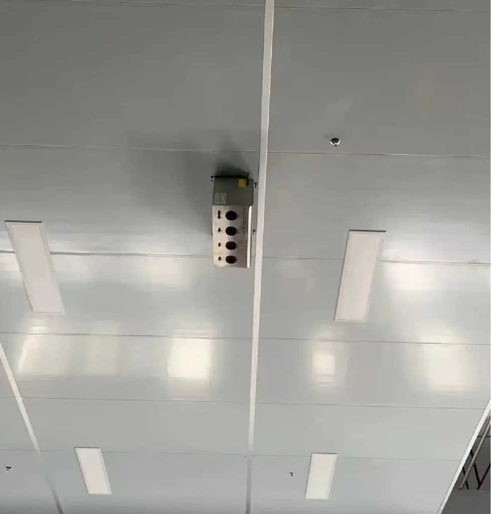 我们为客户按不同区域分别配置了40台臭氧机,采用吊装向下输送臭氧。经过实测验证,臭氧输送速度快,点位检测合格,效果满意,客户加购了一台10ppm浓度的臭氧水机,用于肉类浸泡杀菌。