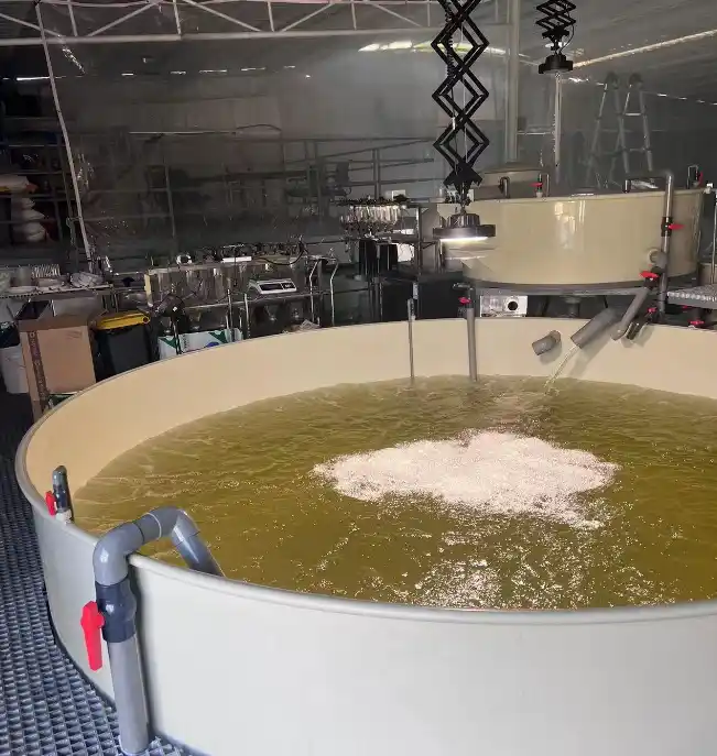 香港海边石斑鱼养殖场,采用循环水精细化科学养殖,养殖池为高位水泥池,大约50个大小不一的鱼池,包括育苗、中鱼池和成鱼池。从鱼苗培育到成鱼全过程养殖,养殖原水由淡水勾兑海水。水质净化系统包含蛋白质分离器、微滤机、生物过滤器,采用我们臭氧水机前尝试过用含氯消毒剂、臭氧气体,均不能达到预期效果。